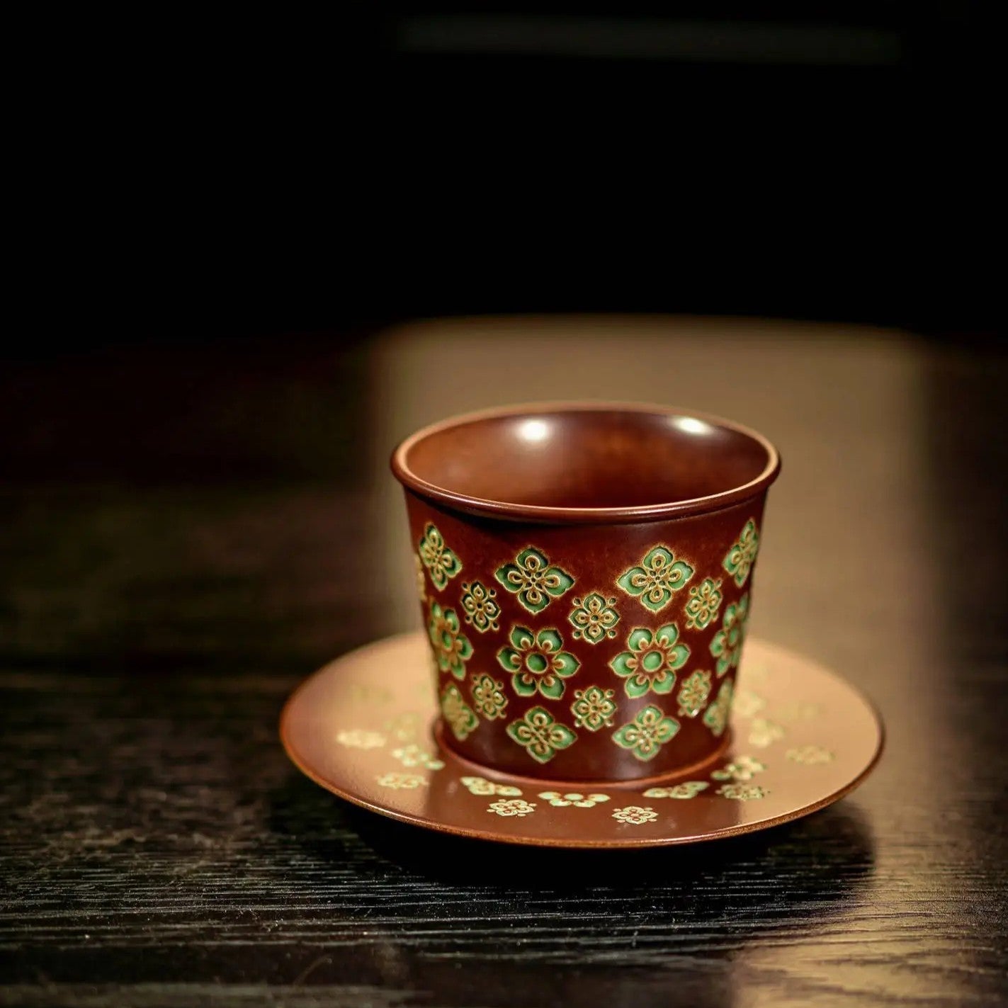 Firstlight is that quiet moment when a new day feels possible. In the Auspice series, this feeling is carried by an auspicious floral motif - not painted on top, but carved into the clay. Made with the Longquan celadon traditional firing technique, each piece is shaped by hand, then finished with an original yin-yang double-carving and glaze-fill method so the pattern appears with real depth and texture. From motif design to glaze formulation, everything follows Li Bin's insistence on originality and safety-first materials.
