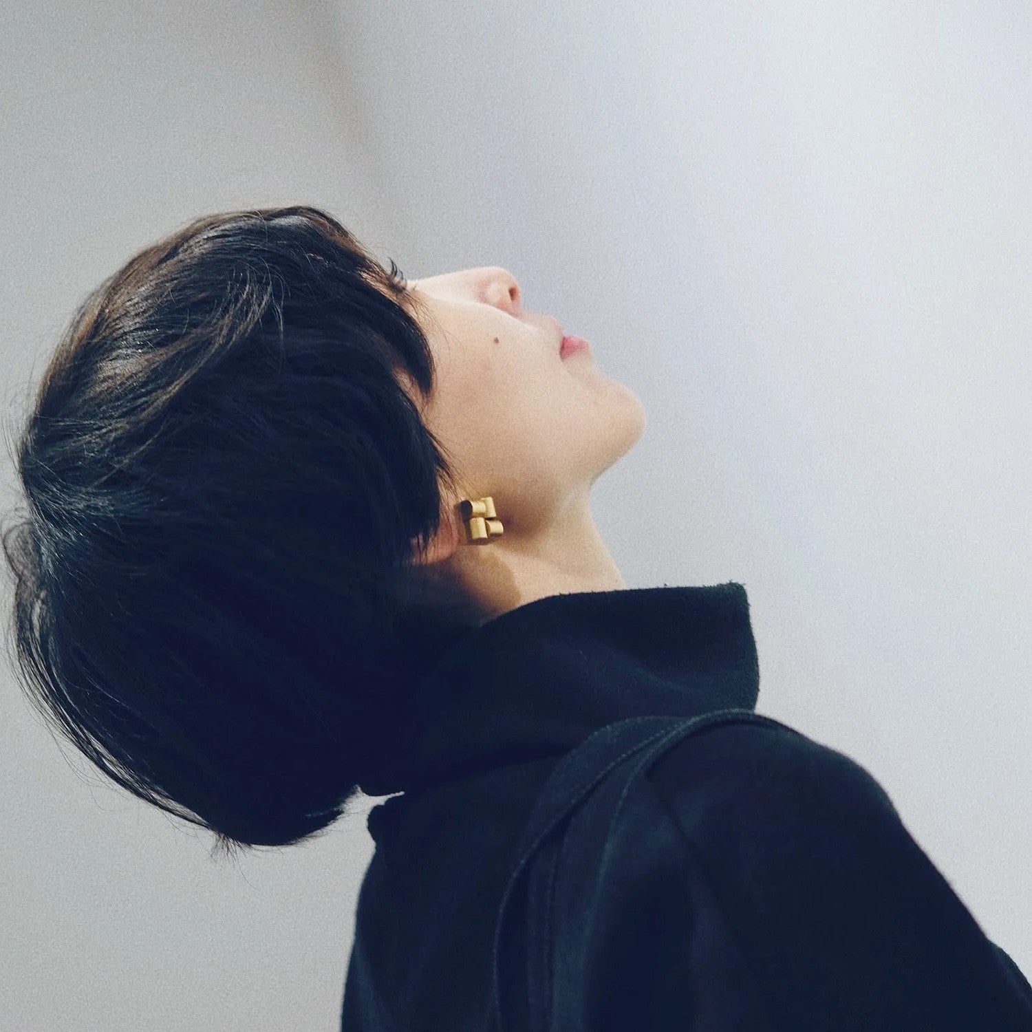 2. Rounded gift-like cube design that sits neatly at the ear, adding a warm golden accent to workwear, dinners, and special moments.