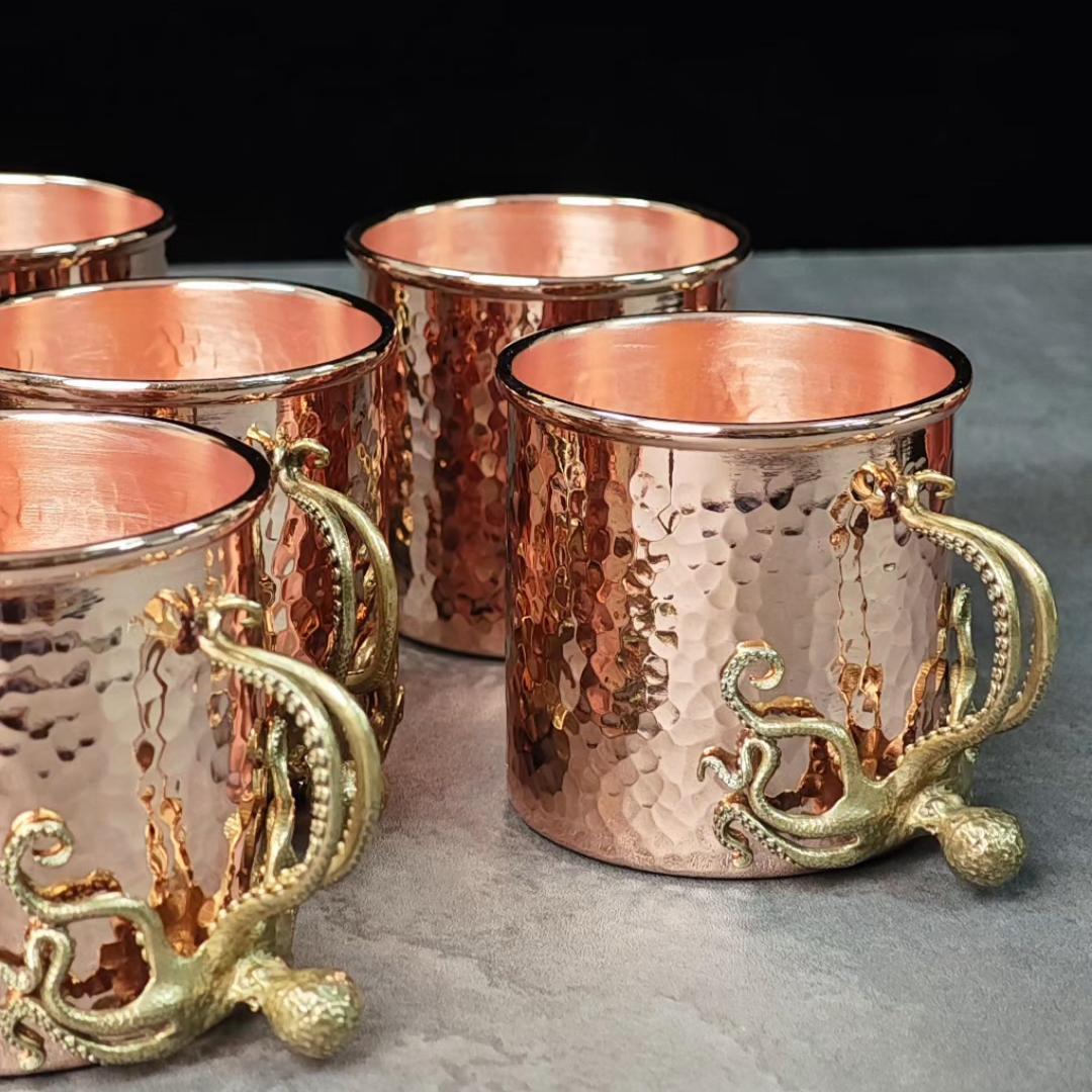 1. Small-batch handmade mug with a pure copper body and a brass octopus handle.