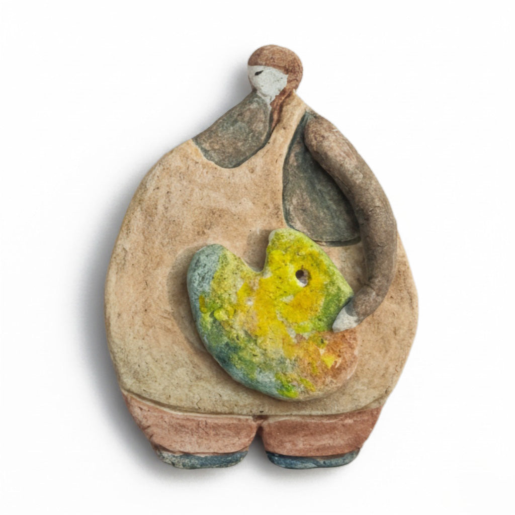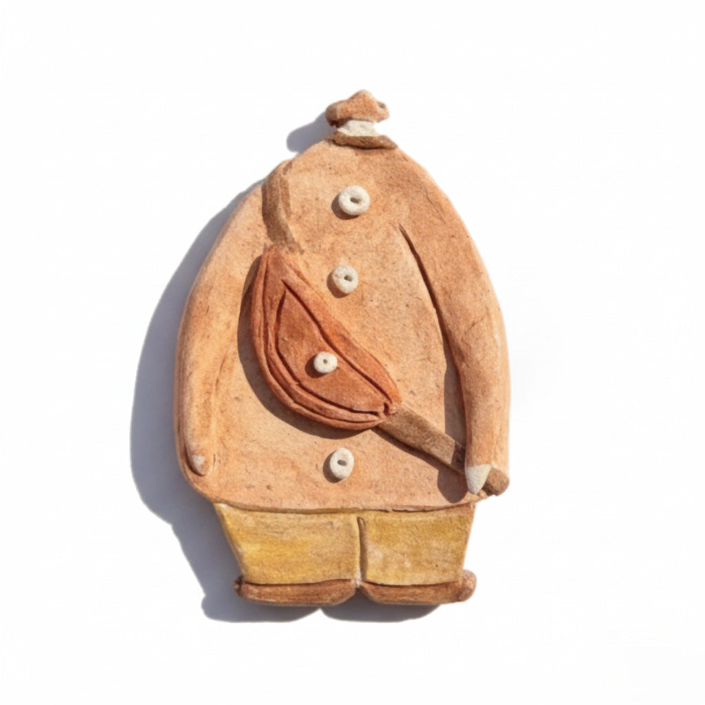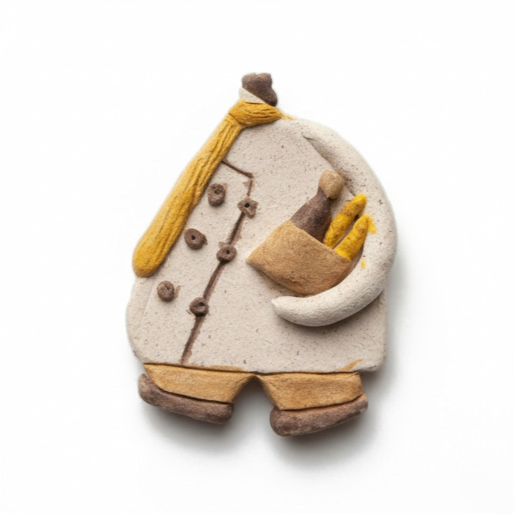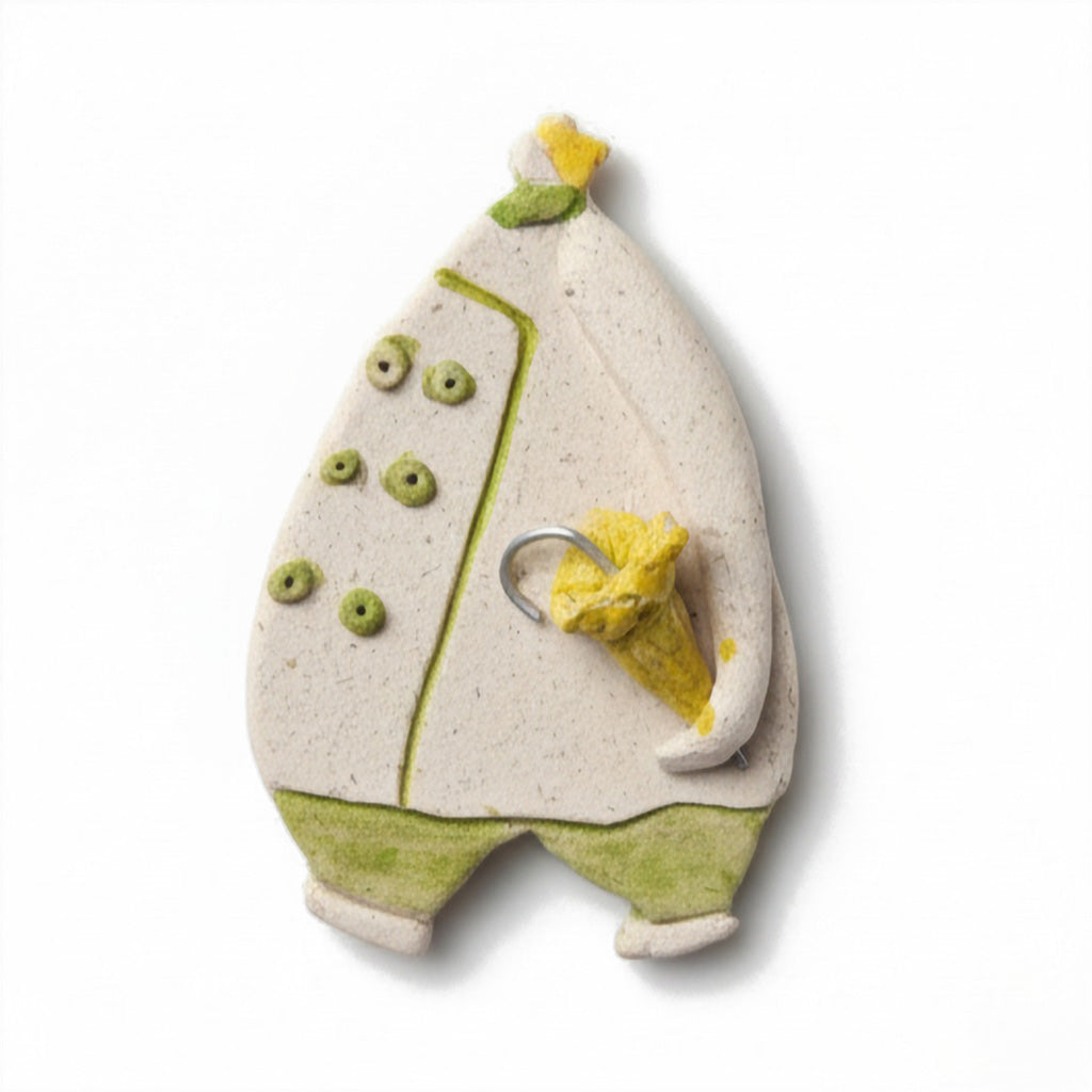 Each figure begins as a sketch of a small everyday gesture. Yizuo sculpts and refines the clay by hand, blending subtle pastel tones with mineral pigments before the first firing. After polishing, each piece is fired again at high temperature for strength and color depth. Final assembly, either pin back or magnet, is completed manually to preserve balance and detail.