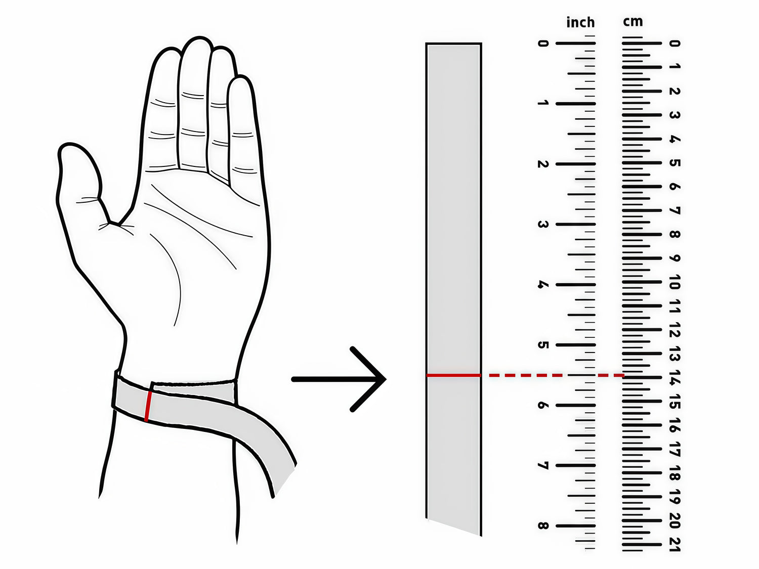How to measure: Wrap a thin string or paper strip around the spot where you will wear the bracelet, snug but not tight. Mark where it overlaps, lay it flat, and measure the length. This is your actual wrist size. Please provide the measurement in inches (in) or centimeters (cm).