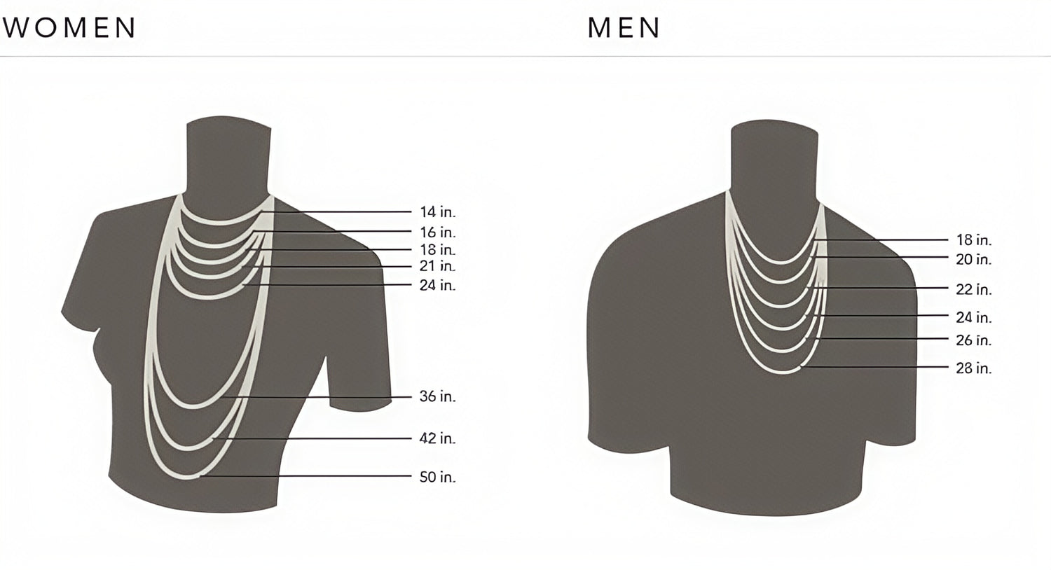 The chart is for reference only. For the best fit, measure your ideal necklace length on your body. If you already have a necklace that fits perfectly, measure that necklace - it is the most accurate.