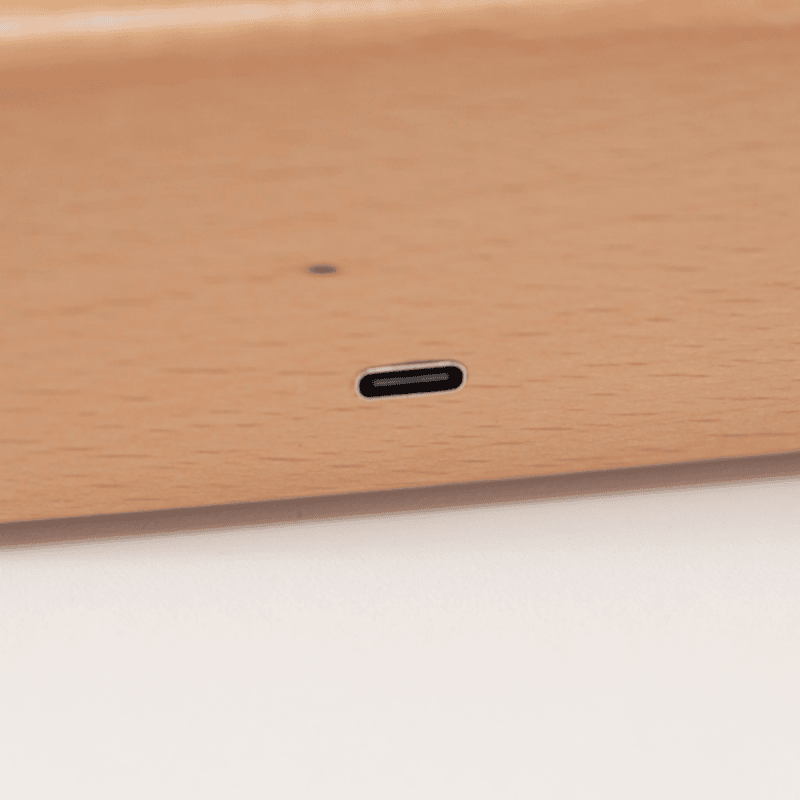 Keep away from direct sun and heat/AC vents; ideal indoor RH 40–60%. Wipe with a soft dry or slightly damp cloth - no soaking, abrasives, alcohol, or solvents. Wax-oil finish: refresh 1–2x/year with clear wood wax oil and buff. For indoor use on a stable surface; do not pull tentacles/rods; keep away from liquids and from children/pets. USB-C (5V) charging; don’t operate while charging; if stored long-term, top up the battery about every 3 months.